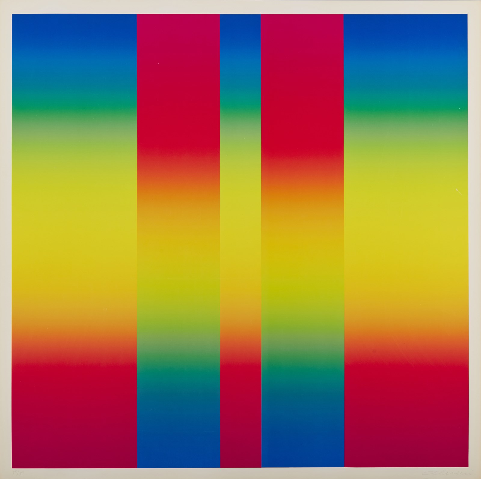 ALVIANI GETULIO (n. 1939) Cromie Spettrologiche. . 1972. Litografia offset. Cm 69,00 x 69,00. 378/500. Tiratura e firma in basso a matita. Edizioni Plura, Milano.