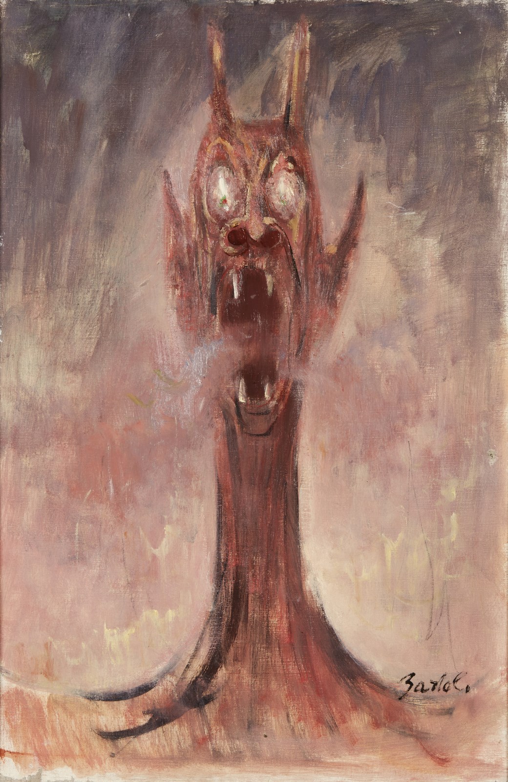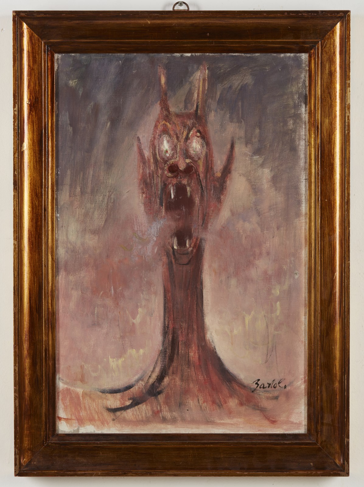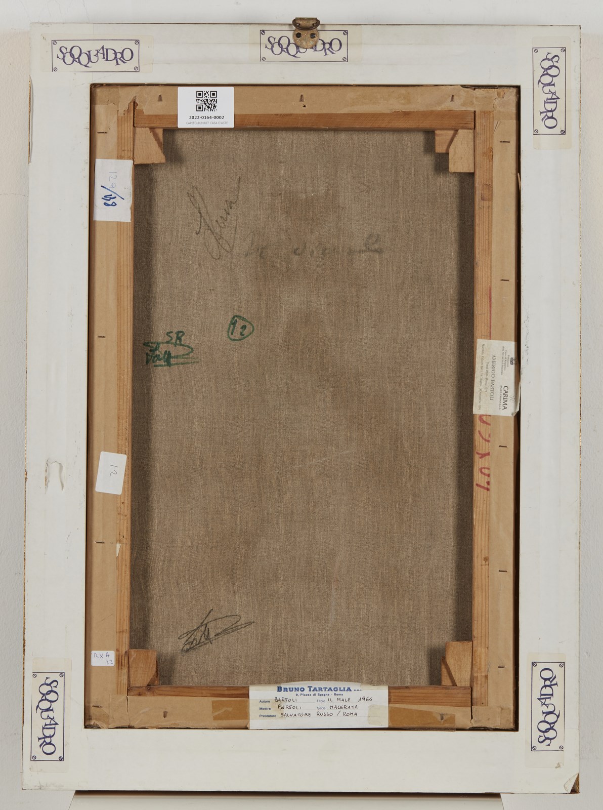 BARTOLI NATINGUERRA AMERIGO (1890 - 1971) Il male. 1964. Olio su tela . Cm 40,00 x 60,00. Firma in basso a destra. Al retro cartiglio descritto BrunoTartaglia, Roma. Provenienza: Bruno Tartaglia, Roma; Galleria Russo, Roma; Collezione privata, Roma. Esposizione: Specchio del Fauno, Palazzo Ricci, Macerata, 1994. Pubblicazione: Amerigo Bartoli a cura di Giuseppe Appella ,De Luca Edizioni d'Arte. Lievi difetti.