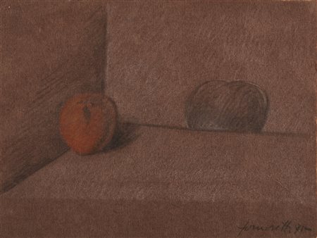 FORNASETTI PIERO (1913 - 1988) Natura morta. . 1971. Tecnica mista su carta. Cm 15,50 x 11,50. Firma e anno in basso a destra. . Cornice presente