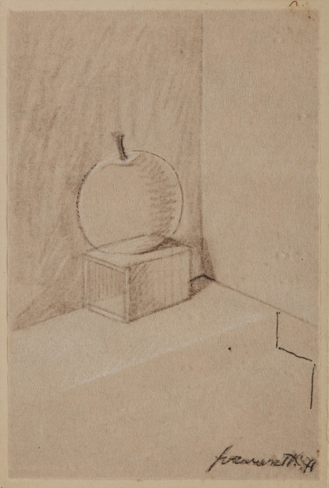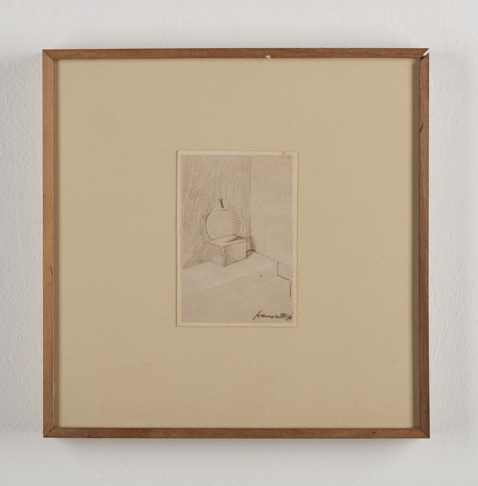 FORNASETTI PIERO (1913 - 1988) Natura morta. . 1971. Tecnica mista su carta. Cm 8,50 x 12,50. Firma e anno in basso a destra. . Cornice presente