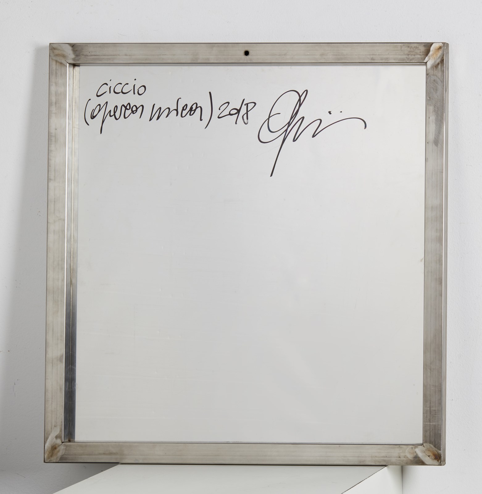 MARCHEGIANI PEP (n. 1971) Ciccio. 2018. Tecnica mista su lamina. Cm 60,00 x 60,00. Firma, titolo e anno al retro. Difetti.