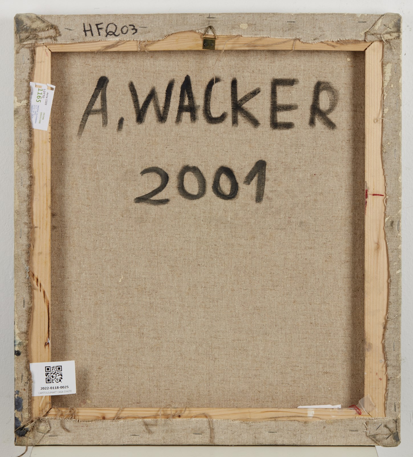 WACKER ALEXANDRA (n. 1958) Senza titolo. 2001. Tecnica mista su tela. Cm 45,50 x 50,00. Al retro firma e anno. Lievi difetti.