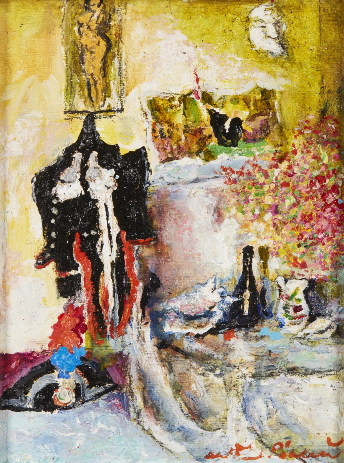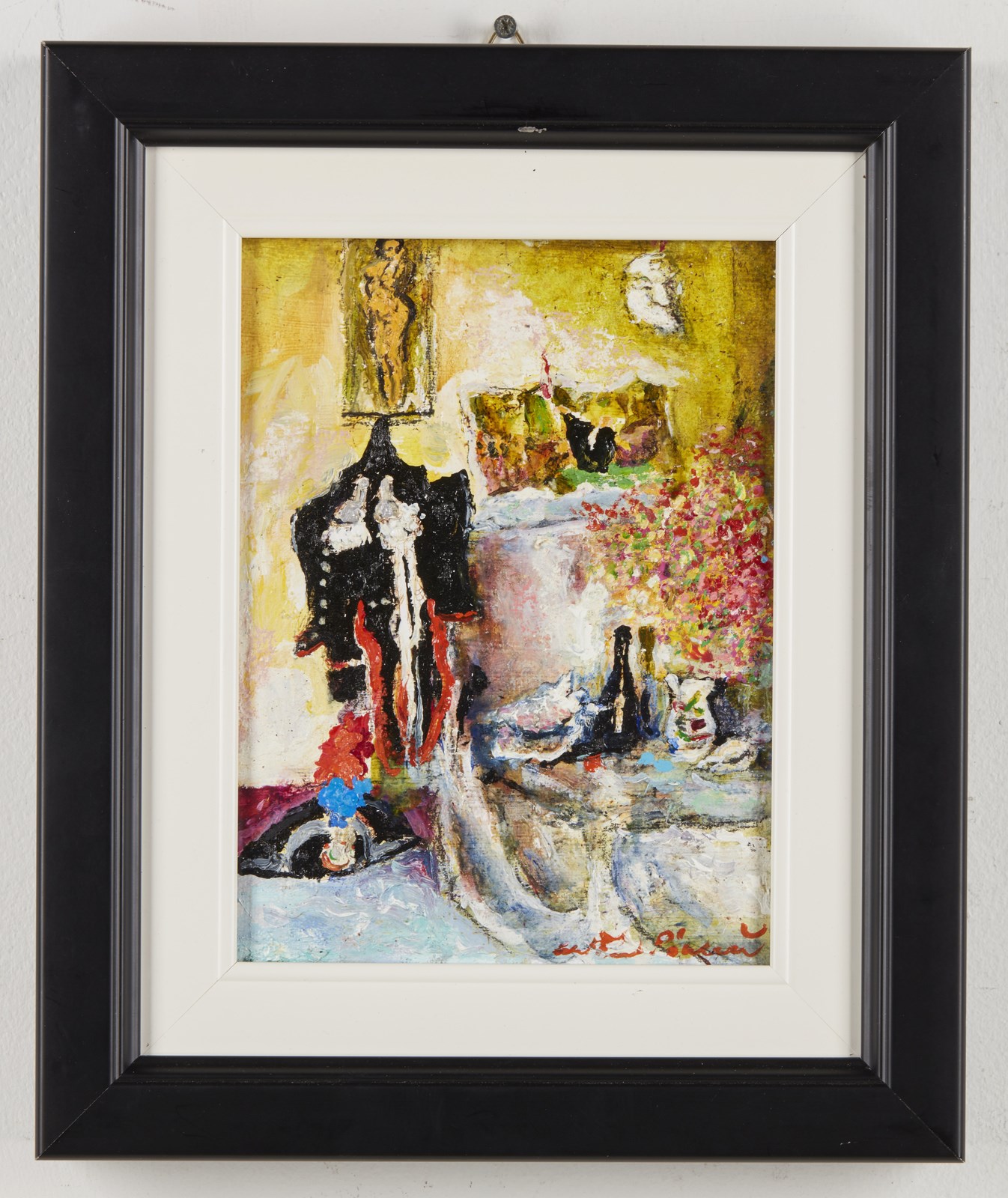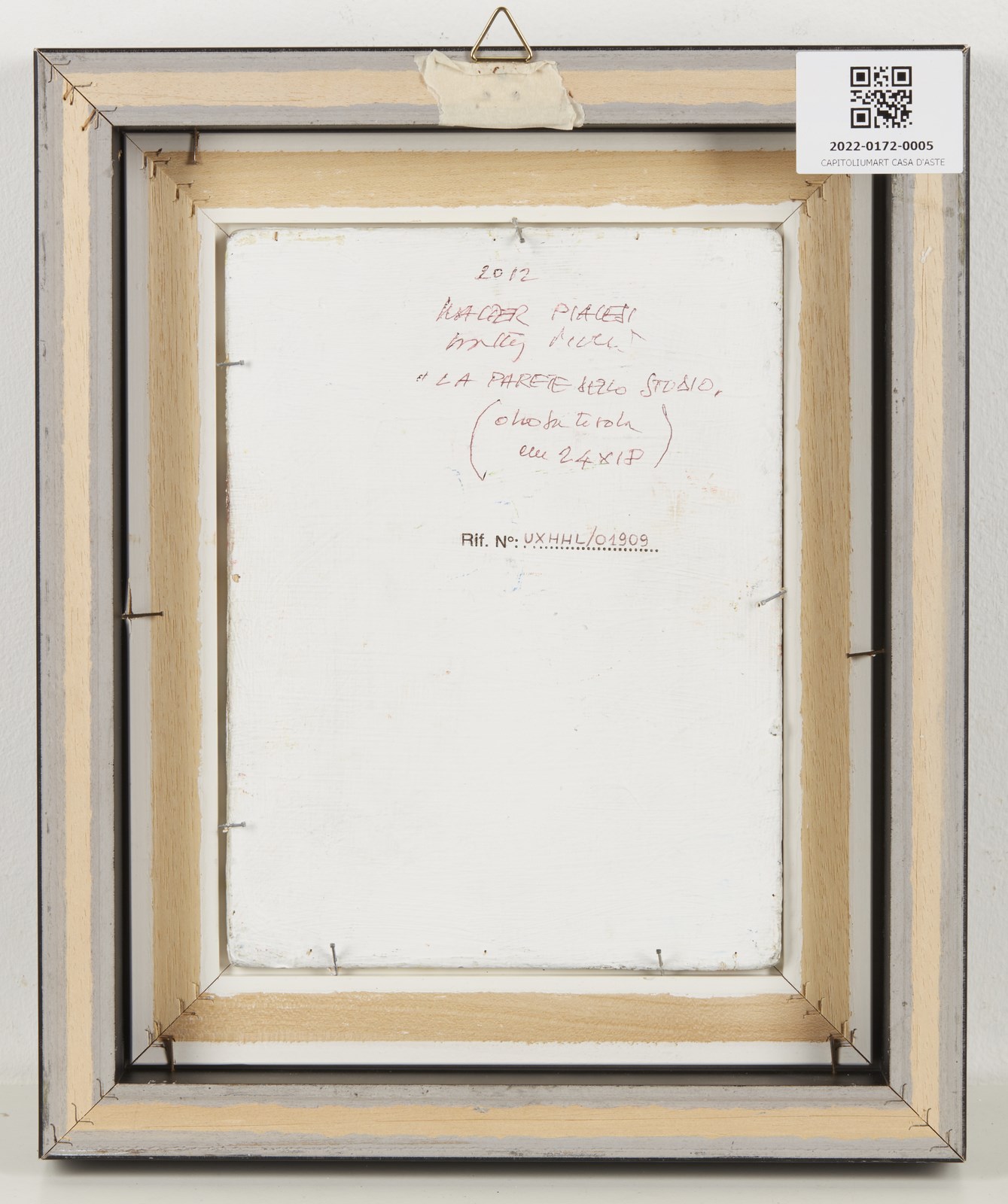 PIACESI WALTER (n. 1929) La parete dello studio. 2012. Olio su tavola. Cm 18,00 x 24,00. Firma in basso a destra. Autentica dell'artista su fotografia con cartiglio descrittivo e numero d'inventario dello Studio d'arte Ca' Spinello, Pesaro.