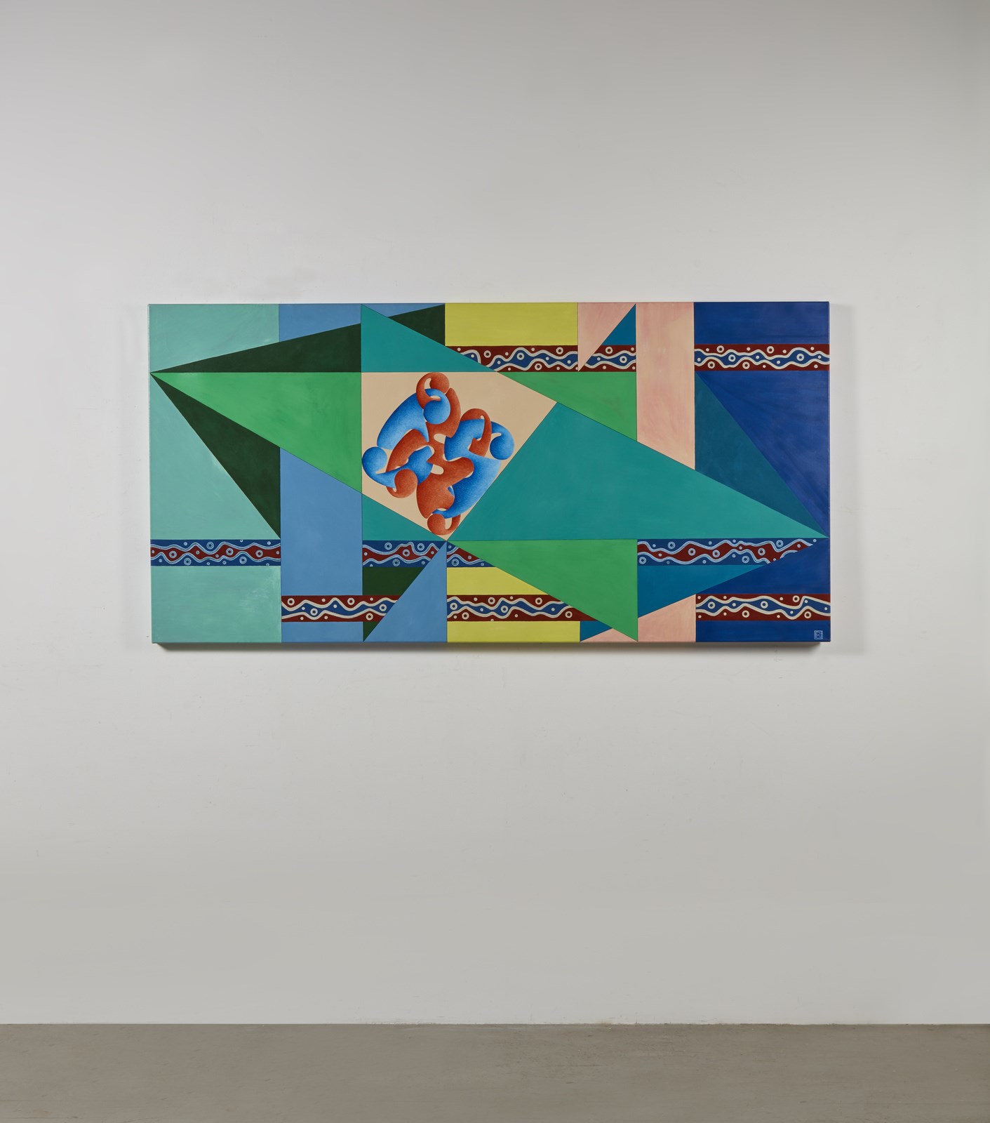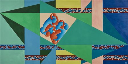POMODORO BRUTO (n. 1961) Senza titolo. 2006. Olio su tela . Cm 100,00 x 200,00. Firma e anno in basso a destra.