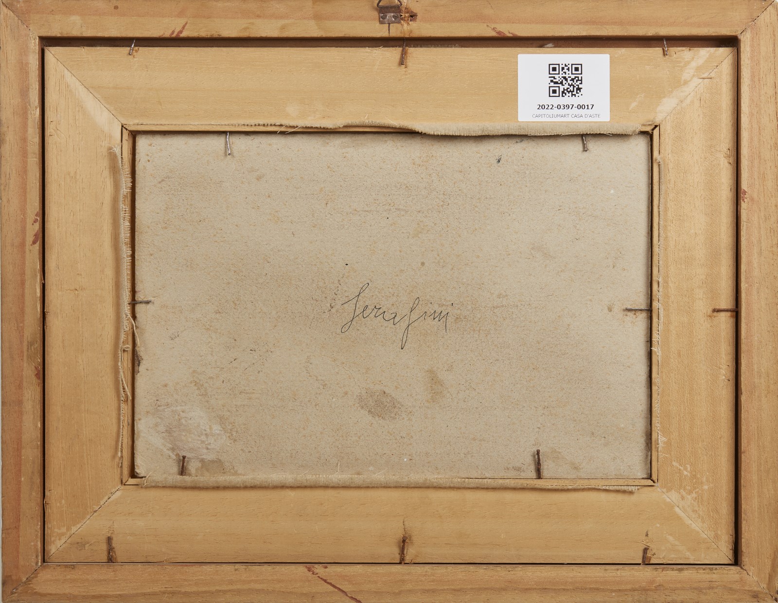 SERAFINI GIUSEPPE (1915 - 1987) Senza titolo. Olio su cartone. Cm 30,00 x 20,00. Firma in basso a destra e al retro. Cornice presente