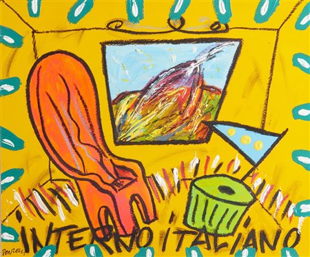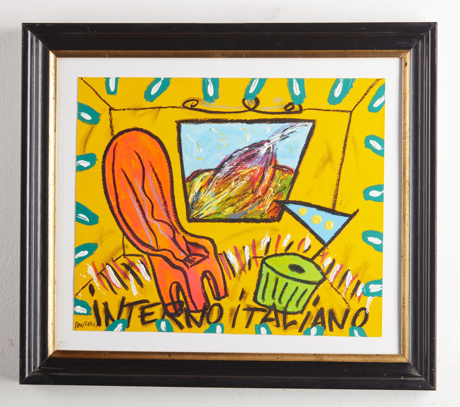 DONZELLI BRUNO (n. 1941) Interno italiano. . Tecnica mista su carta. Cm 30,00 x 25,00. Firma in basso a sinistra. Lievi difetti. . Cornice presente