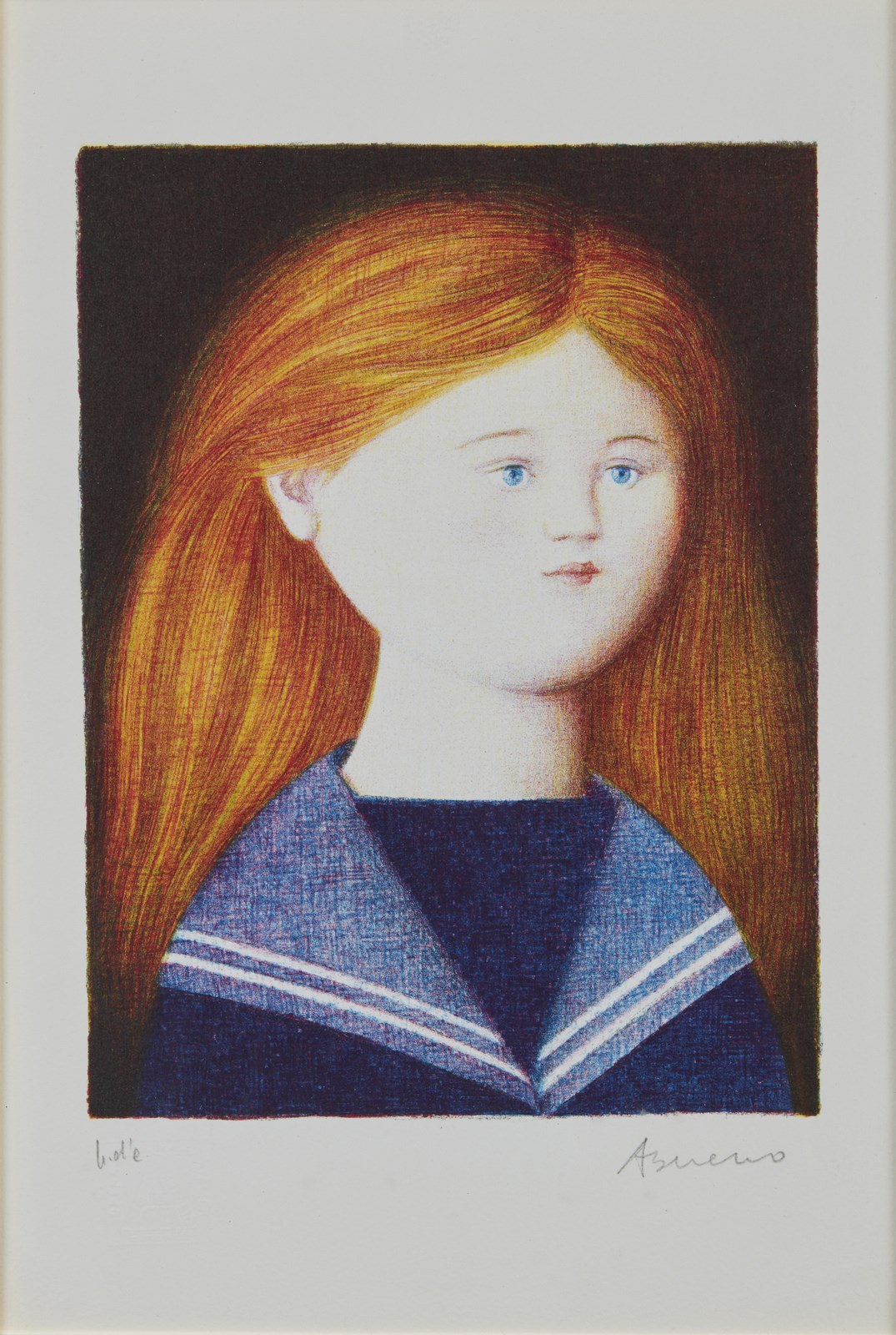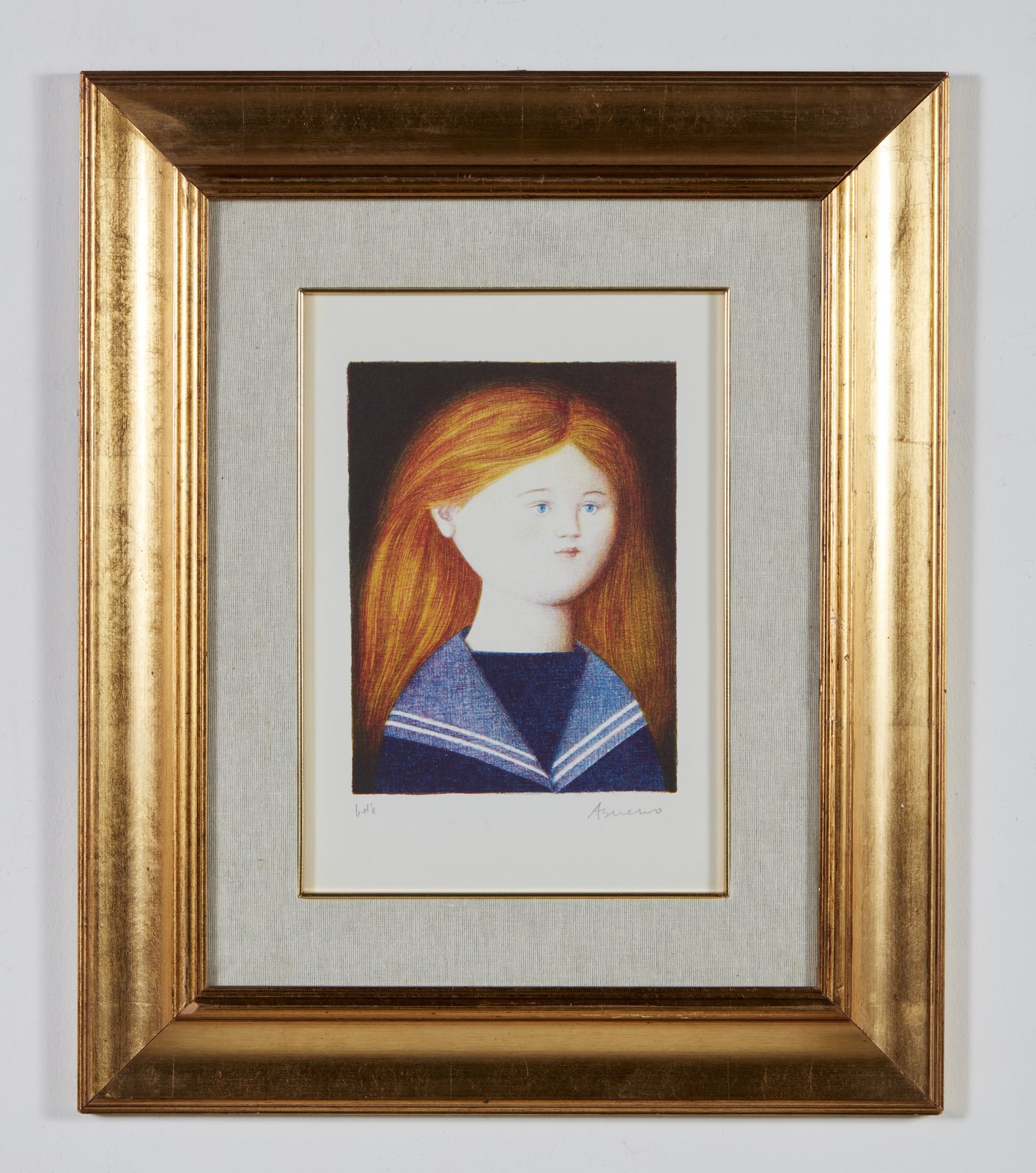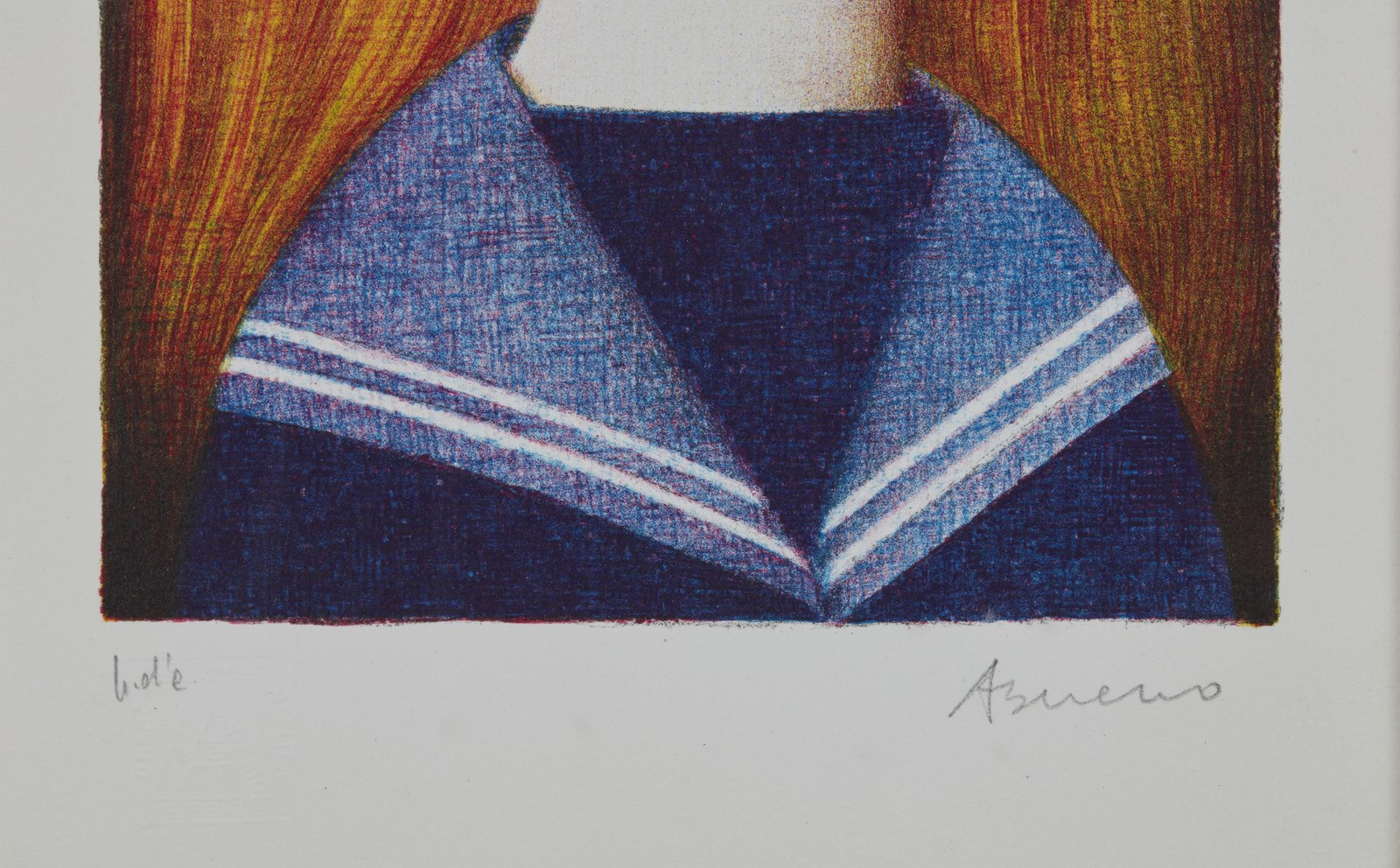 BUENO ANTONIO (1918 - 1985) Fanciulla. Serigrafia. Cm 23,00 x 33,00. P.d.a. Tiratura e firma in basso a matita. Timbro a secco Atelier Bueno, Firenze, in basso a sinistra. Cornice presente