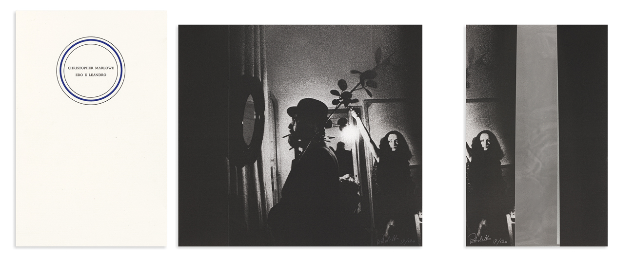Libro d'arte contenente testi di Christopher Marlowe tradotti da Tomaso Kemeny ed un multiplo di Michelangelo Pistoletto su cartoncino piegato recante litografia al recto e superficie specchiante al verso