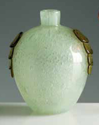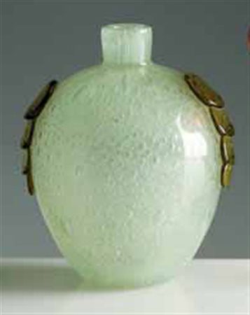 Schneider. Vaso in vetro a bolle con anse applicate, nei toni del verde, 1925 circa. Firma incisa all’acido: Schneider altezza cm 16,5