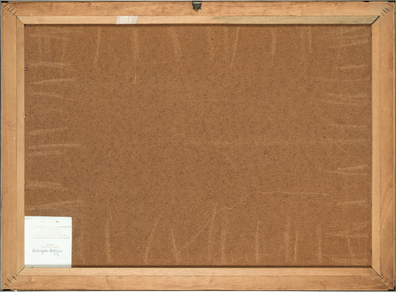 Dichiarazione di autenticità a cura di Rosangela Baggini al retro