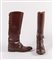 HERMÈS Stivali alti in pelle marrone con dettagli in metallo argentato....