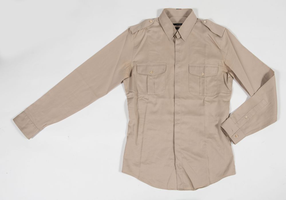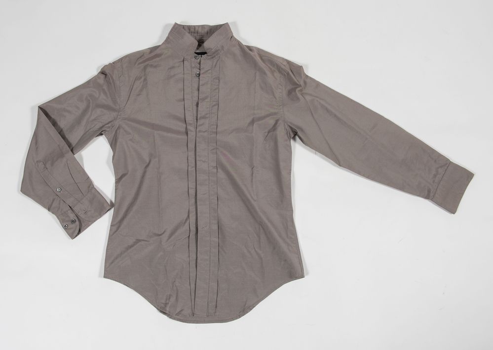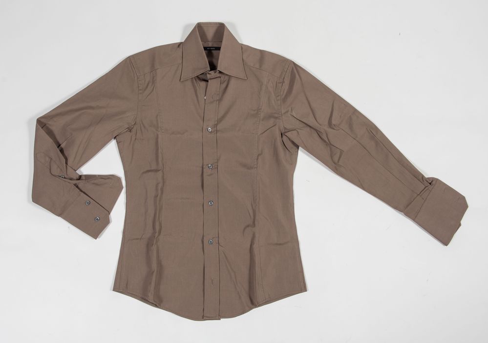 GUCCI, GIORGIO ARMANI Lotto composto da tre camicie in cotone sui toni del beige e del tortora. Ciascuna reca taglia 38. Una delle tre riporta composizione 100% cotone. Recano marchi Gucci, Gucci made in italy e Giorgio Armani Made in Italy.