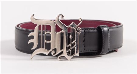 VERSACE Cintura in pelle nera con fibbia in metallo argentato. Lunghezza...