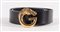 GUCCI Cintura in pelle nera con fibbia in metallo dorato a forma di G...