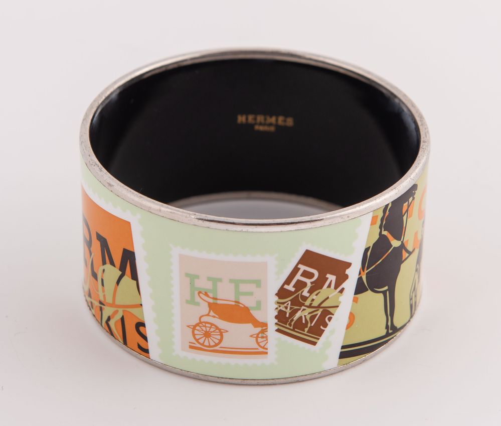 HERMÈS Bracciale a fascia rigida smaltato raffigurante motivi decorativi sui...
