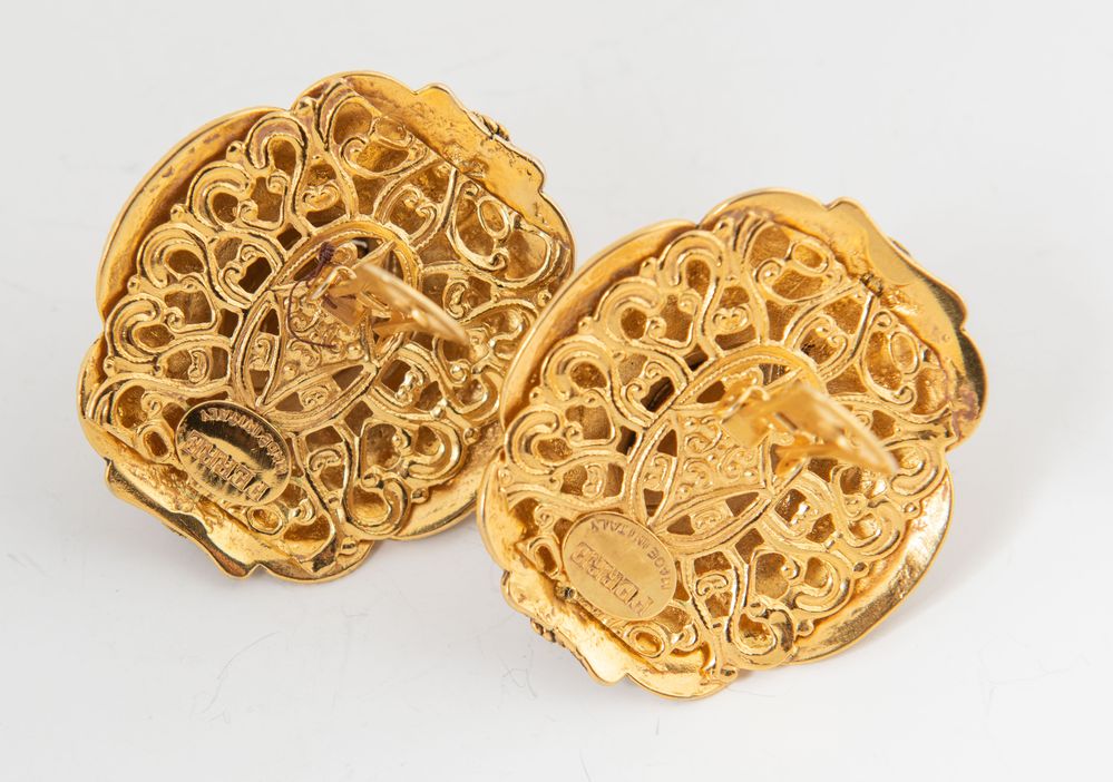 Lot 359 | GIANFRANCO FERRÈ Orecchini a clip in metallo dorato e lavorato decorati con...
