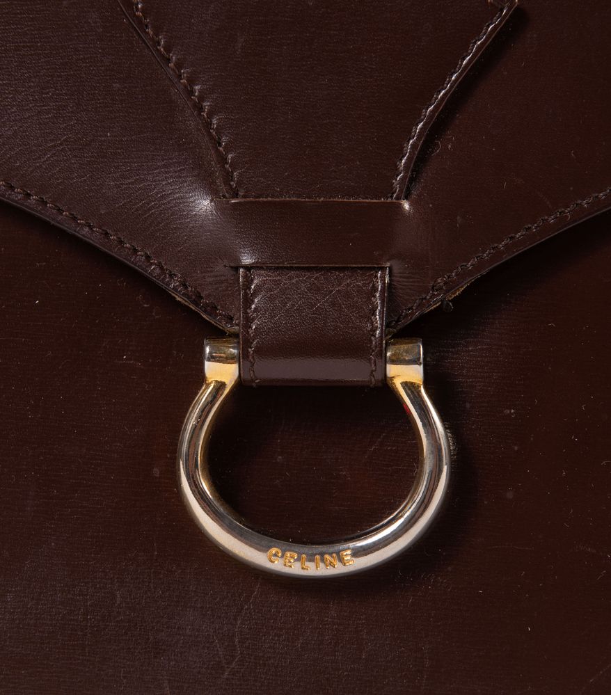 CELINE Borsa a mano in pelle liscia marrone con dettaglio della chiusura in...