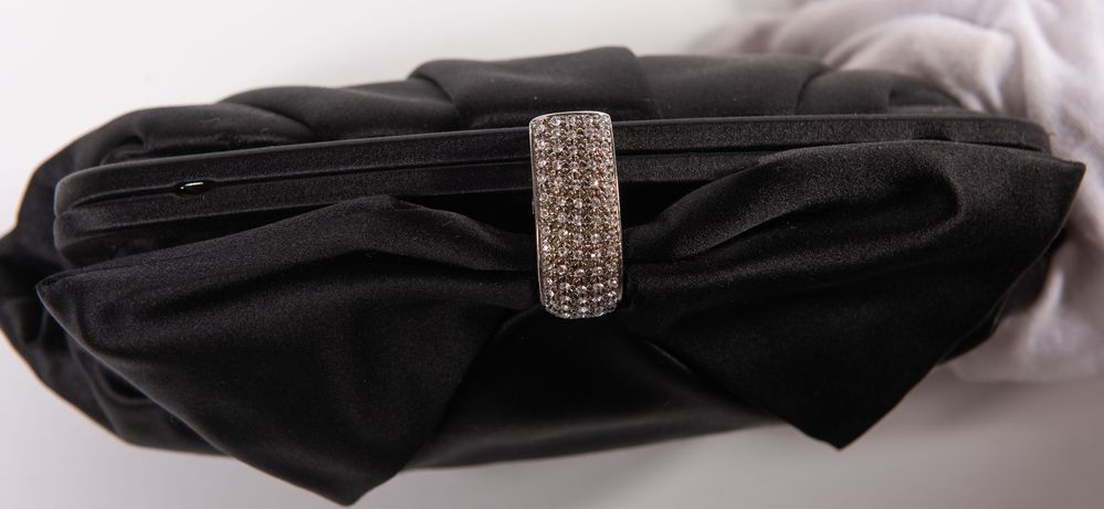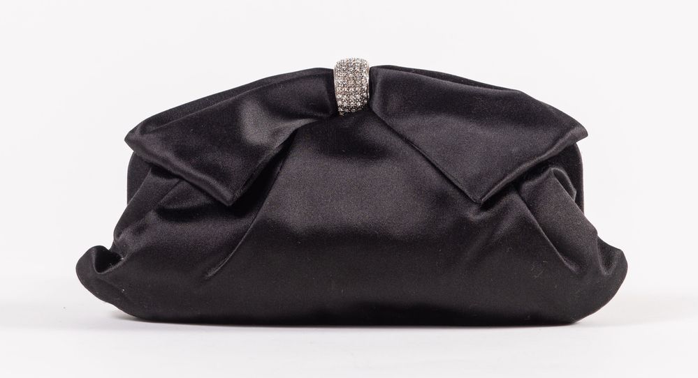 VALENTINO GARAVANI Borsa da sera in seta nera con chiusura a scatto...