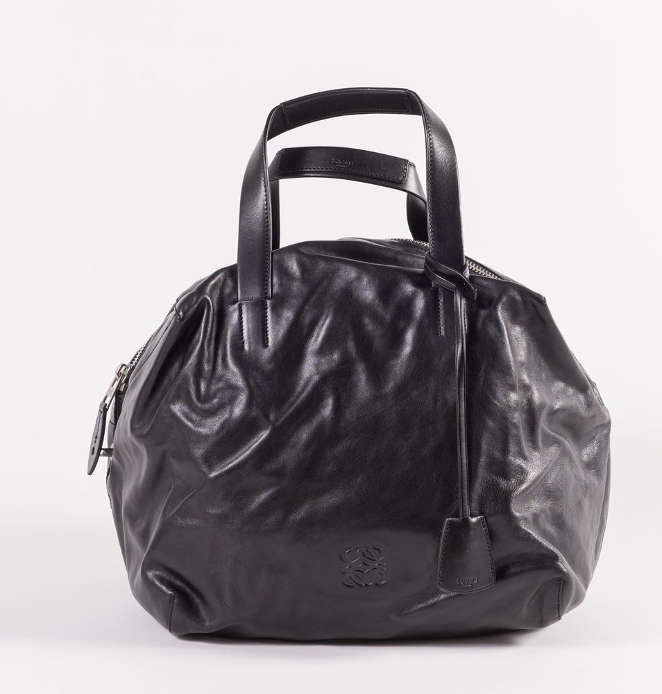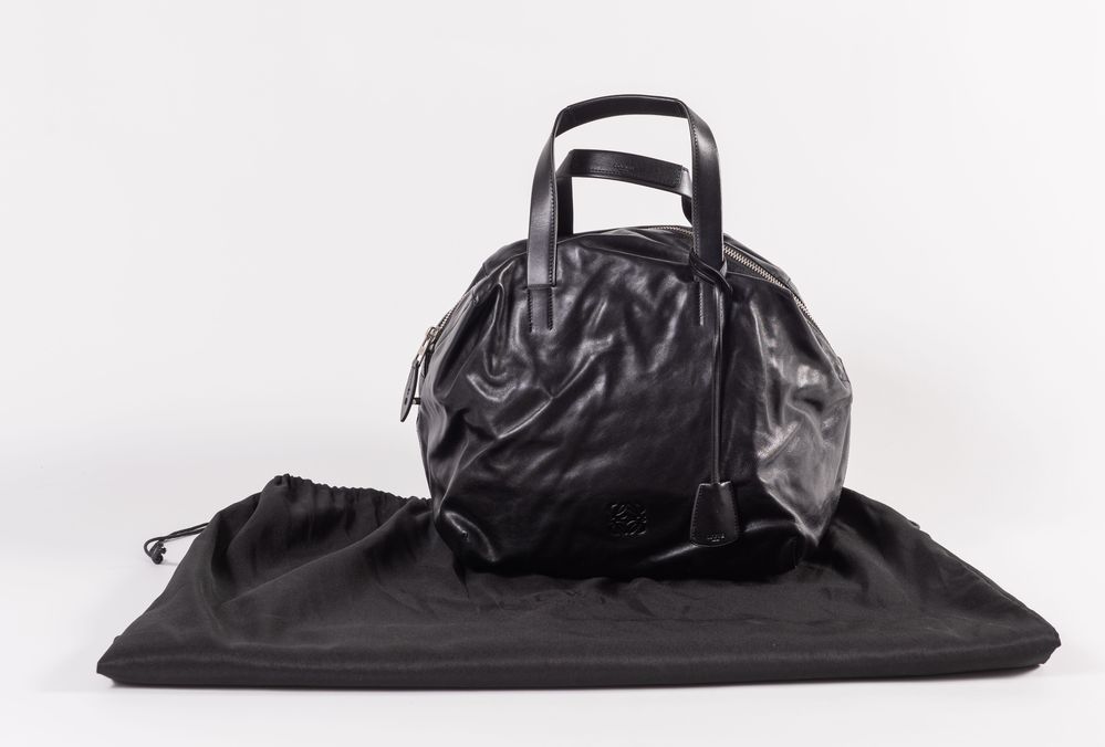 LOEWE Borsa da spalla in pelle liscia nera. Cm 31x40x20. Altezza con manico: cm 44. Interno rifinito in tela nera con una tasca chiusa da cerniera. Reca marchio Loewe Madrid 1846 Made in Spain. Corredata di certificato dustbag originale.