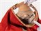 GUCCI Borsa da spalla in camoscio rosso con rifiniture in pelle beige, fascia...