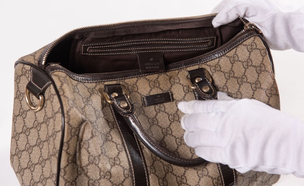 Lot 473 | GUCCI Borsa a mano modello bauletto in tela monogram con rifiniture in pelle...