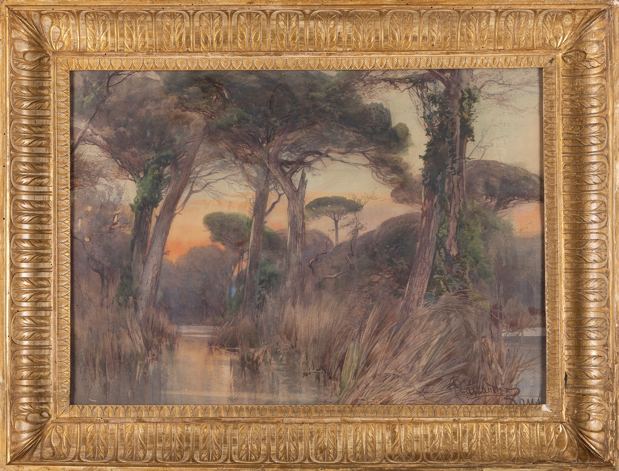 Onorato Carlandi (Roma 1848-1939) - "Tramonto nella foresta di Castel Fusano"