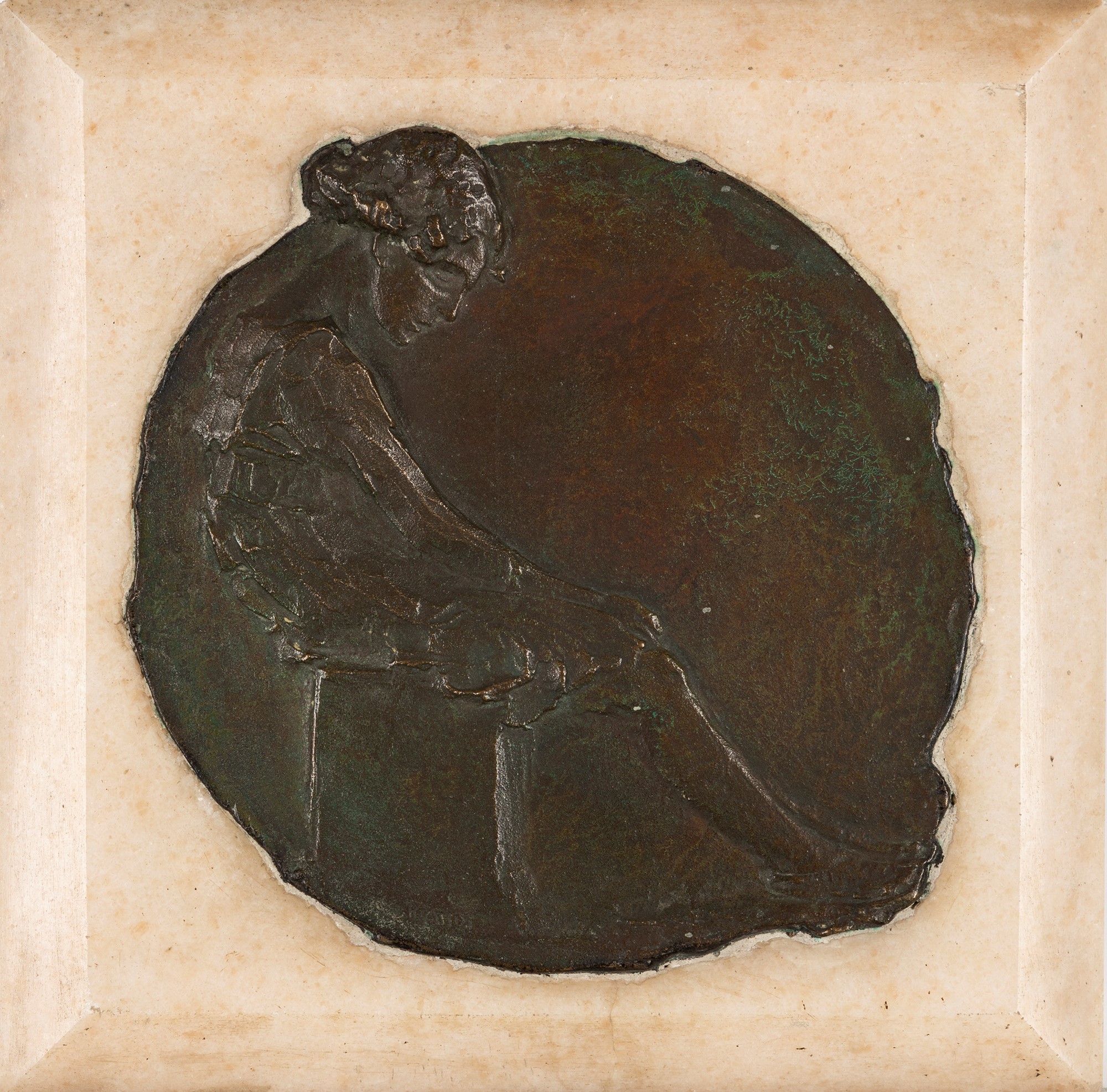bassorilievo in bronzo applicato su marmo rosa di portogallo
