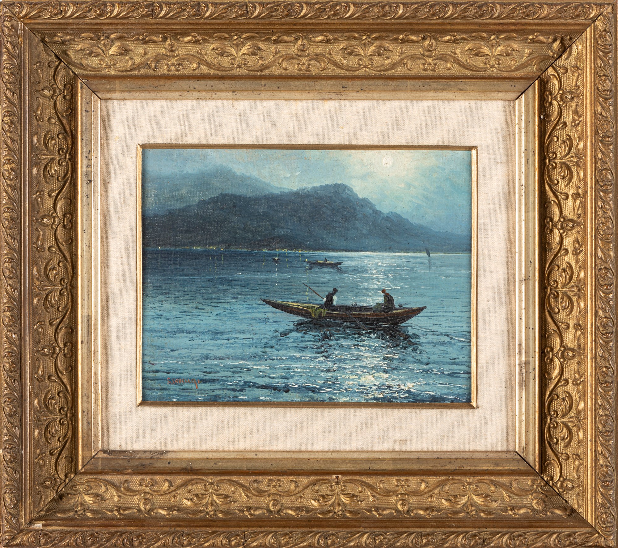 Giovanni Cavalleri (Sabbio Bergamasco 1858-Bergamo 1934) - Pescatori al chiaro di luna