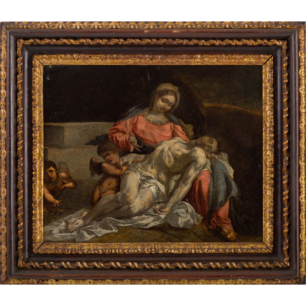 SCUOLA BOLOGNESE XVII SECOLO, La Pietà Farnese, Olio rame