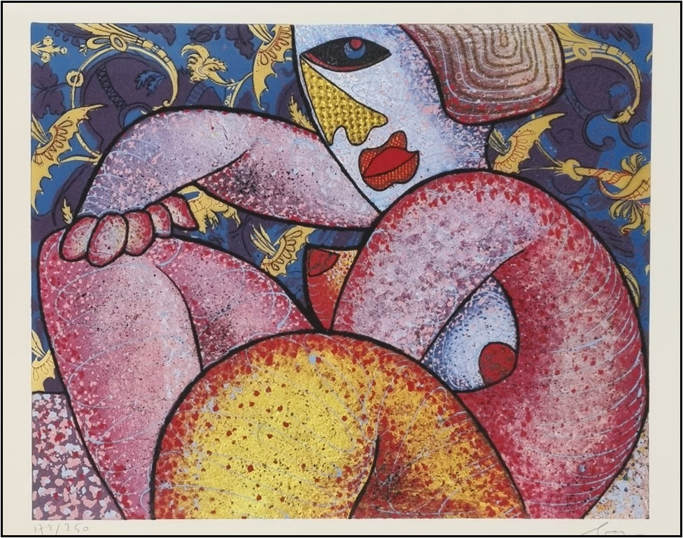 BAJ ENRICO Milano 1924-Vergiate 2003 "Senza titolo” serigrafia polimaterica con applicazioni, su cartoncino cm 90x70. Firmata in basso a destra, tiratura 172/250 in basso a sinistra.