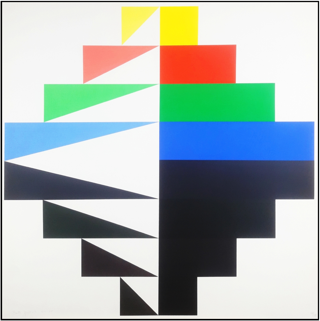 SQUATRITI FAUSTA Milano 1941 "Senza titolo” serigrafia su cartone Fabriano cm 68x68 del 1972/85. Firmata a matita sul fronte in basso a destra, tiratura 46/125 a sinistra. Facente parte della cartella “Exata- dal Costruttivismo all’arte sistemica 1918-1885”.
