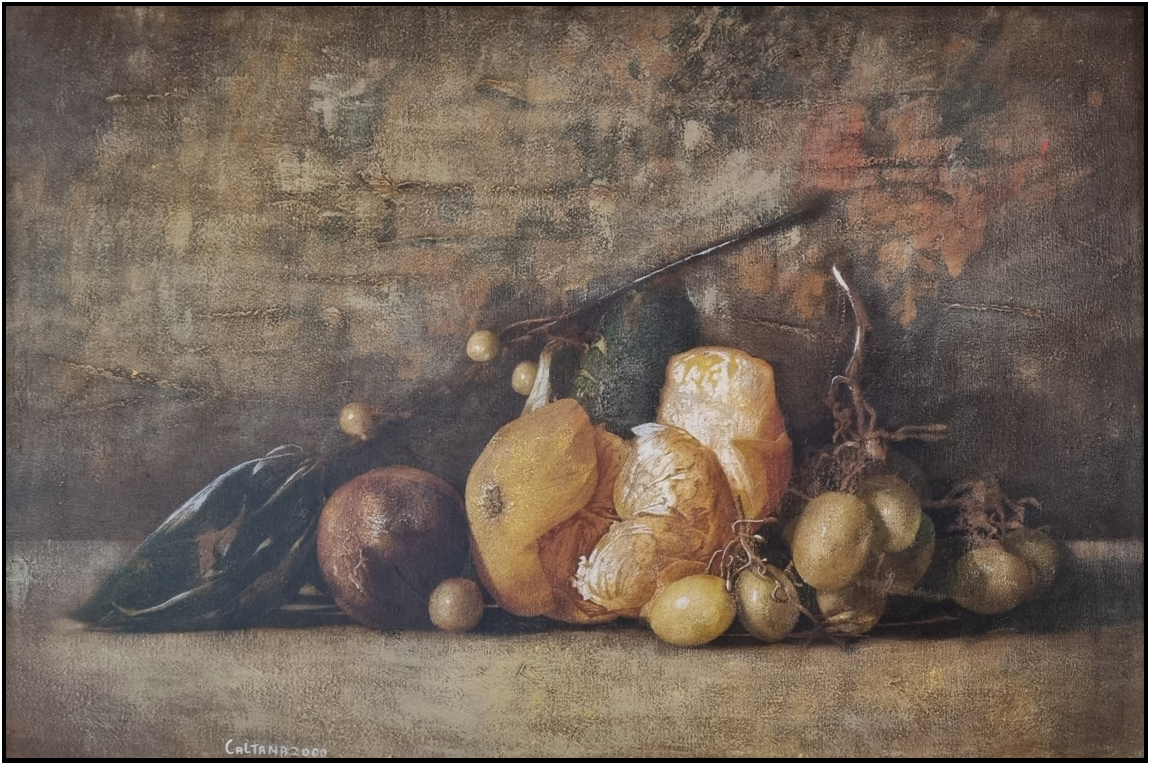 CALTANA LIBERALE (XX) "Senza titolo" olio su tela cm 60x90 del 2000. Firmato e datato sul fronte in basso a sinistra. Sul retro firma e timbro della Galleria Il Castello.