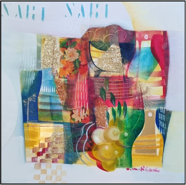 DI CARLO MARIA VITTORIO Foggia 1939-Milano 2015 "Sari Sari" olio su tela cm 60x60. Firmato sul fronte in basso a destra. Sul retro firmato.