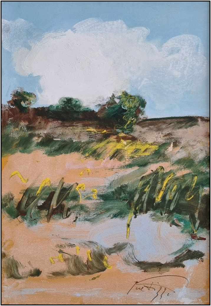 SCATIZZI SERGIO Gragnano 1918-Firenze 2009 “Paesaggio” acrilico su carta intelata cm 35x50. Firmato sul fronte in basso a destra. Autentica su foto a cura dell’artista. Certificato di garanzia a cura della Galleria “Il Triangolo”.