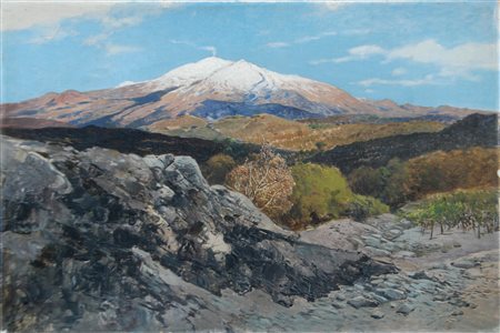 Hermann Corrodi 1844-1905 olio su cartone telato raff.veduta dell'Etna firmato in basso a sinistra