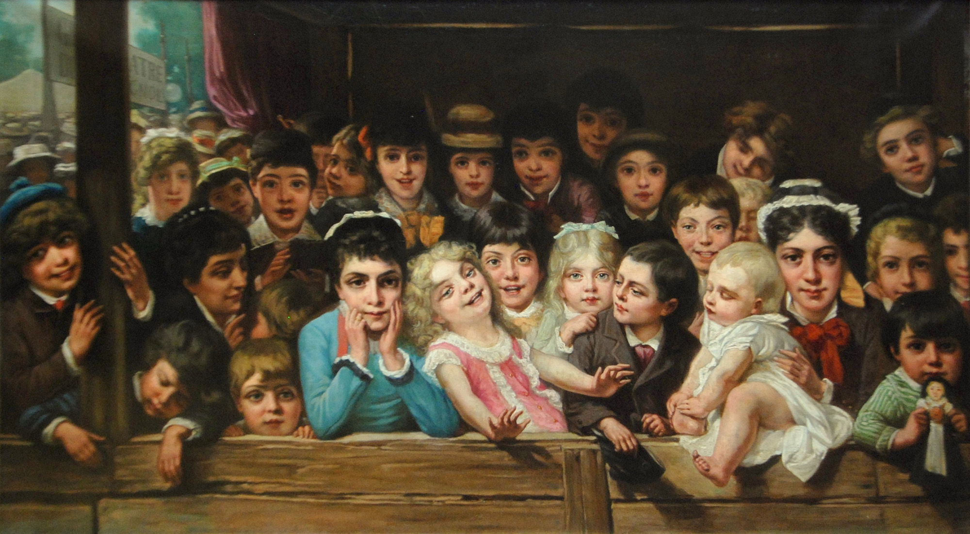 Timoleon Lobrichon 1831-1914 olio su tela 'gruppo di bambini' sec.XIX firma in basso a sinistra