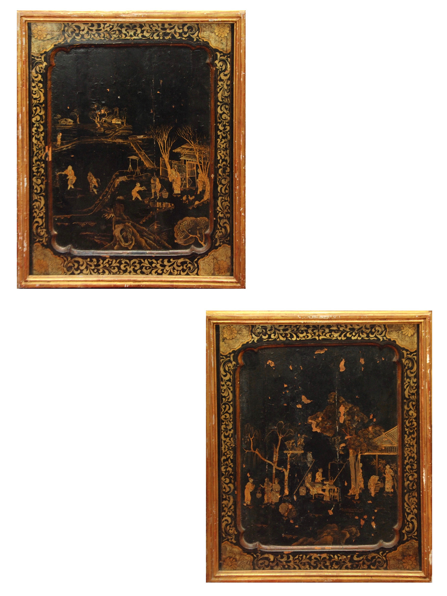 Coppia di pannelli in legno laccato a cineseria sec XVIII