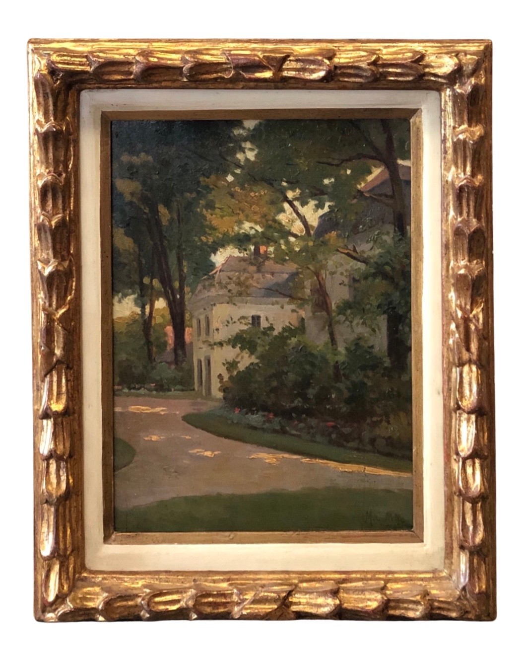 Massimiliano Gallelli 1863/1956 olio su tavoletta raff.scorcio di villa con parco firmato in basso a destra