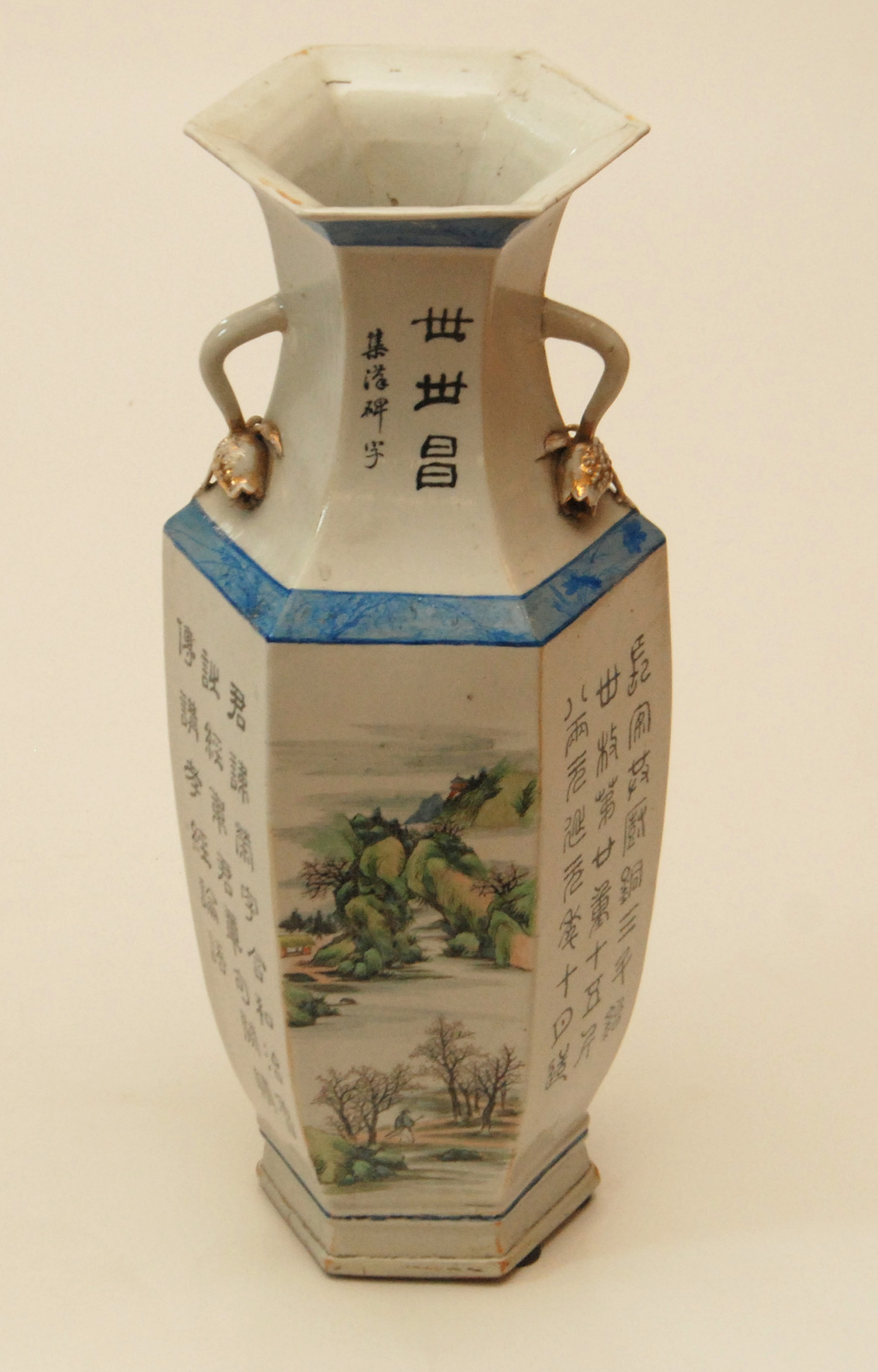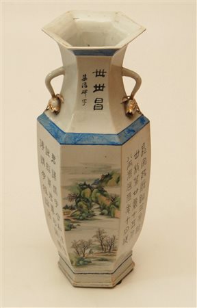 Cina vaso in porcellana ottagonale decorato con paesaggi e scritte