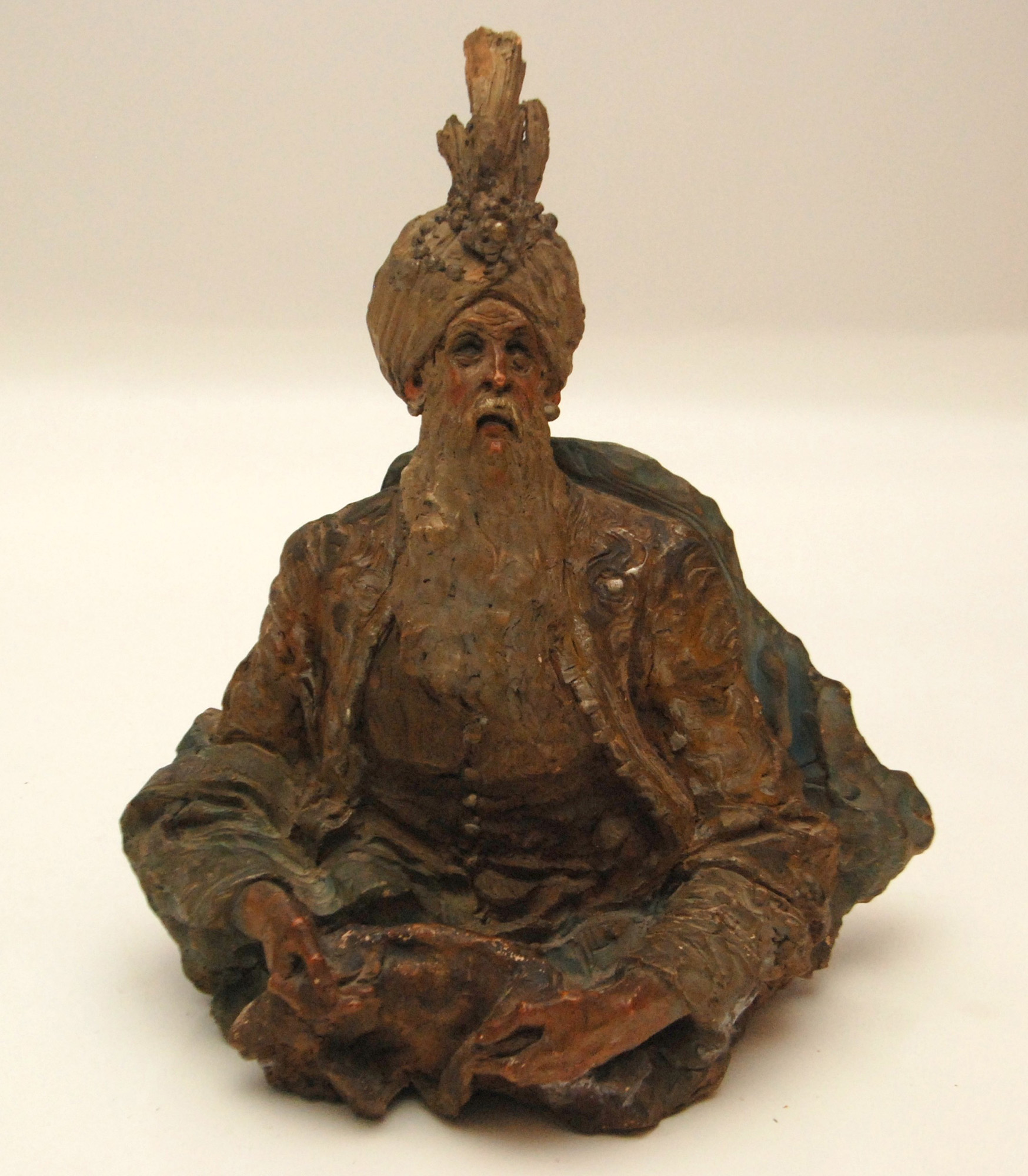 scultura in terracotta raff.personaggio orientale sec.XIX firmata sul retro