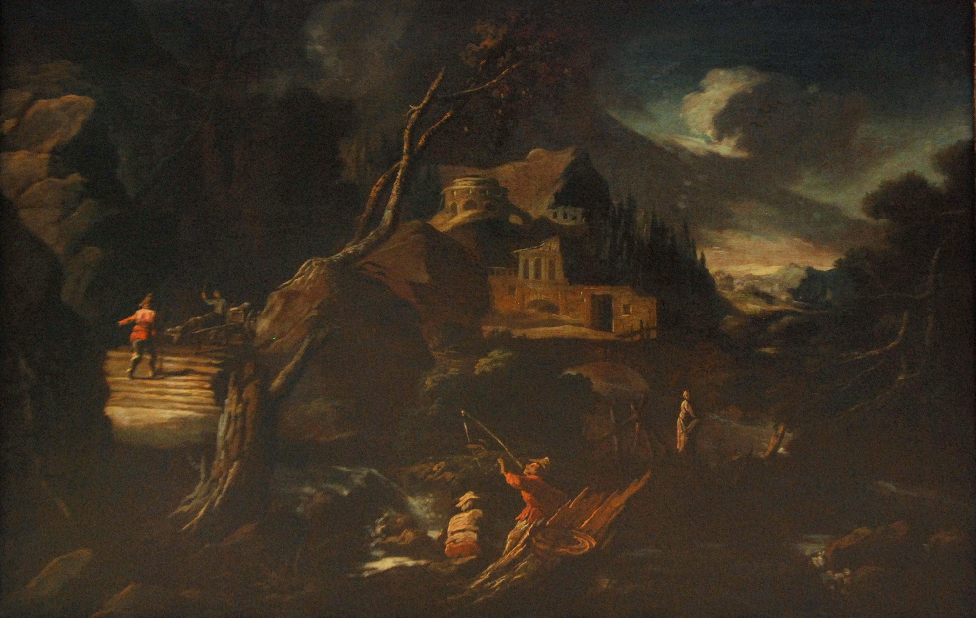 Previous Lot 196 Next Casa d'Aste Martini - C.so Cavallotti 76, 18038 Sanremo Asta antiquariato, dipinti, design e arte orientale Sessione unica Thursday 9 June 2022 hours 15:00 (UTC +01:00) DIPINTO olio su tela raff.paesaggio con personaggi sec.XVIIIcm. 57x84