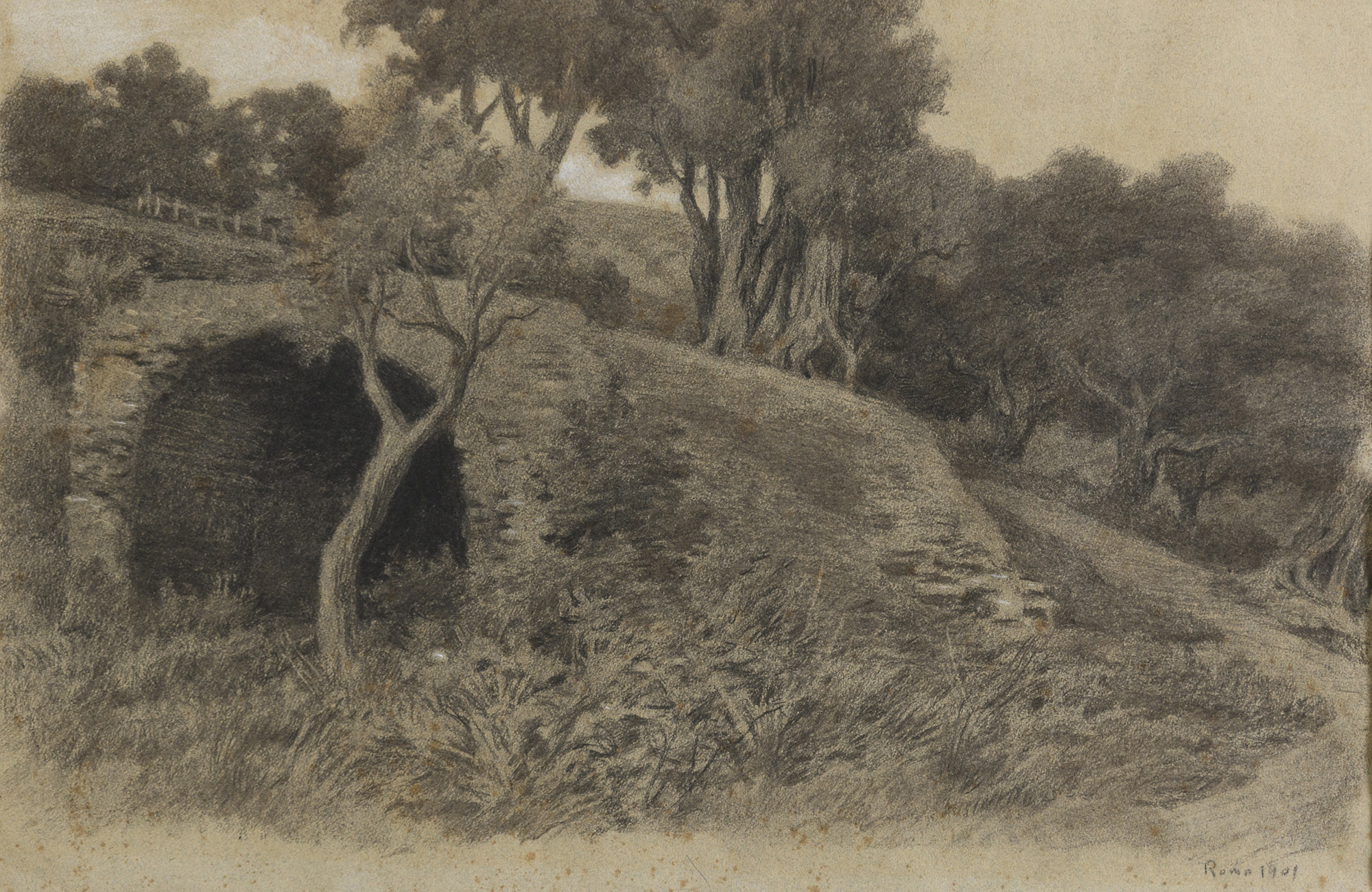 PASTELLO CAMPAGNA ROMANA DI ETTORE FERRARI, 1901