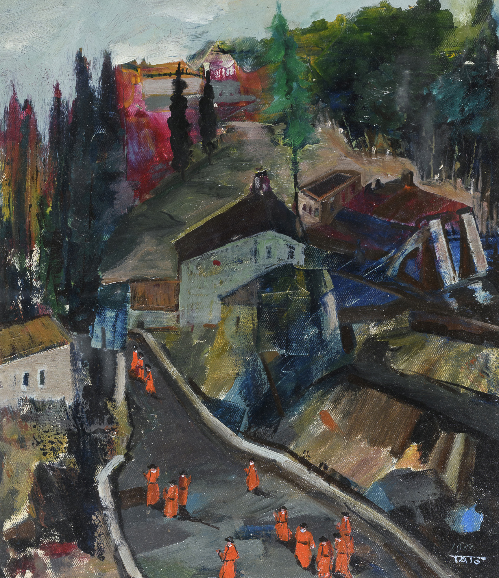 DIPINTO CITTÁ LIGURE PAESAGGIO DI GUGLIELMO SANSONI detto TATO