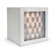 Installazione in metallo a smaltato bianco, plexiglass, lampadine, motore elettrico e impianto a 220 volt, cm. 36 x 36 x 36