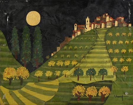 DIPINTO PAESAGGIO UMBRO DI SOBI CHERIF, 1967