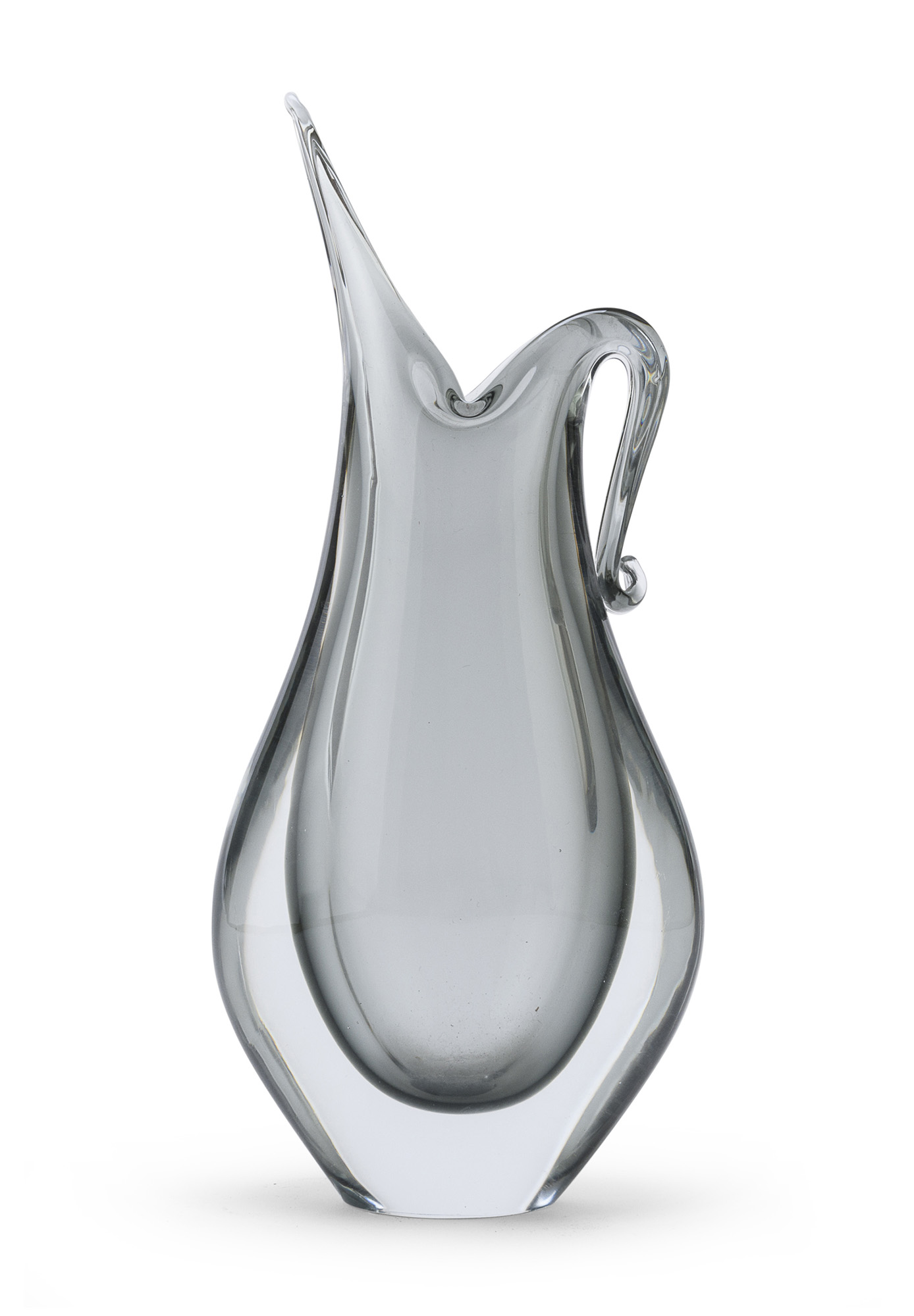 a fondo bluette trasparente fumè, con manico a goccia.