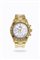 Cassa in oro con fondello a vite e lunetta tachimetrica. Quadrante bianco con indici geometrici applicati ed indicazione della data al 5