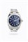 Cassa in acciaio con fondello a vite e lunetta liscia. Quadrante blu con indici geometrici luminescenti applicati, datario al 3 ed indicazione dei secondi continui al centro.