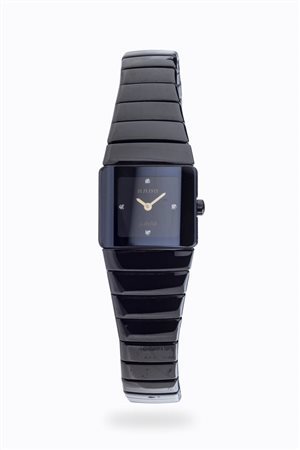 Cassa in ceramica. Quadrante nero con brillanti ai quarti. Bracciale in ceramica con chiusura a scomparsa