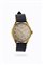 Cassa in oro con fondello a pressione. Quadrante argento con macchie. Indici geometrici e numeri arabi ai quarti applicati